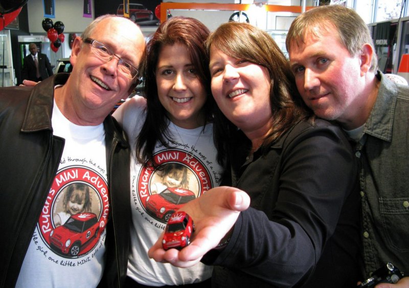During a heartfelt celebration at Ryan’s local MINI dealer, her family was presented with a check to be donated to the Leukemia and Lymphoma Society in her memory. The remaining contributions were designated for a special journey: a trip for Ryan’s family to the MINI Cooper Factory in Oxford, England, where they would enjoy an exclusive tour of the auto plant. As if that wasn’t enough, MINI USA collaborated with their graphics vendor to provide the family with vinyl graphics to transform their life-sized MINI Cooper S into an exact replica of Ryan’s beloved car.